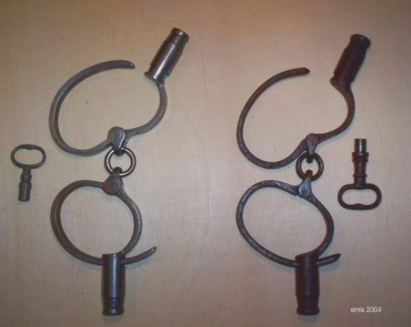 Die Fußschellen von Stotz sind noch viel seltener als die Handschellen. Selbst ein solcher wunderschöner und voll funktionsfähiger Nachbau von Ian McColl ist richtig selten.